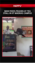 Man Feeds Peahen At A Tea Stall In IIT Madras Campus